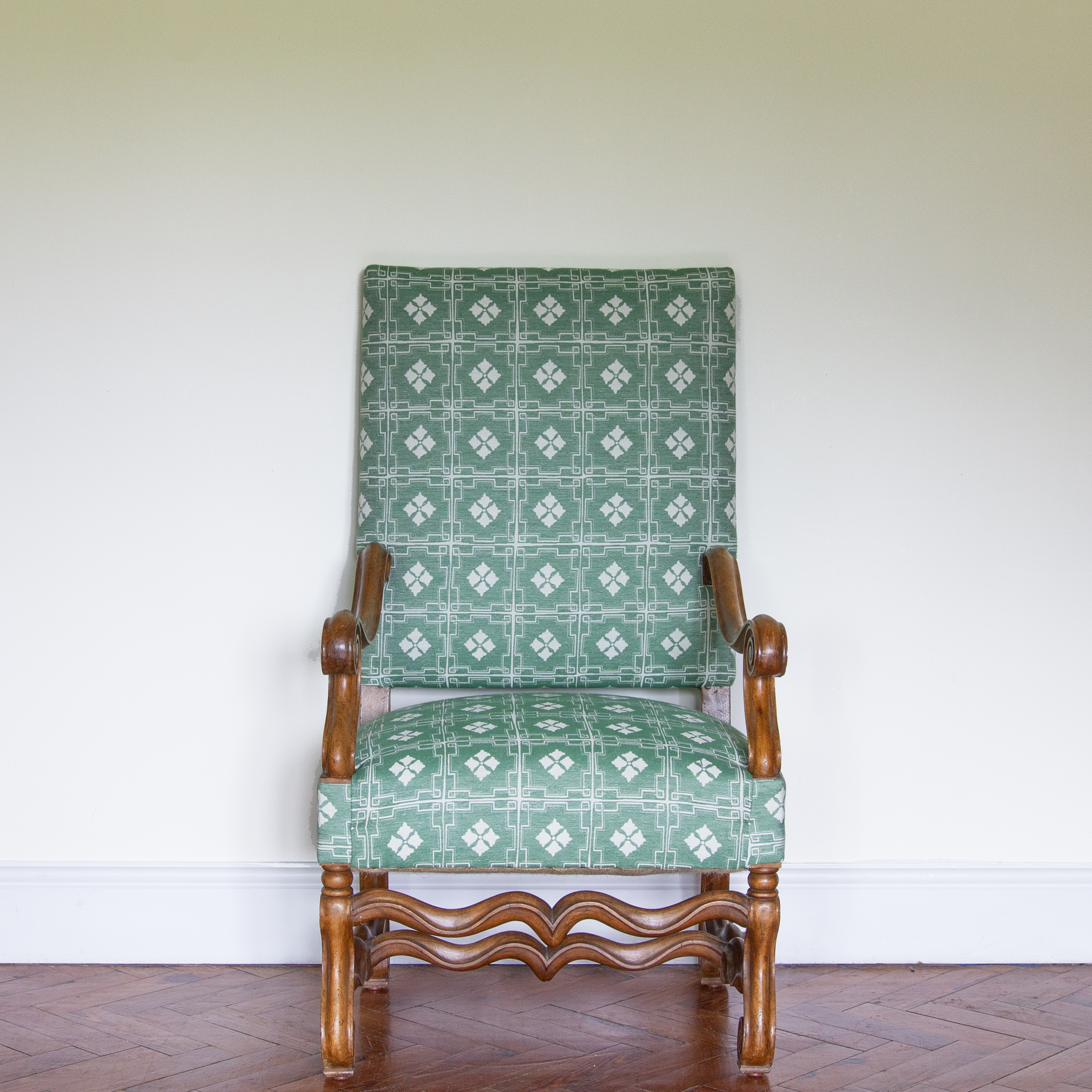 Inspired by a hand-painted 18th century English tile, Felix is woven here in the UK.