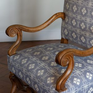 Otis was inspired by a pattern found on a 19th century Kashmiri shawl, and is a woven upholstery fabric which uses the paisley motif to create a mosaic-like design.
