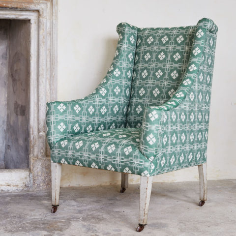 Otis was inspired by a pattern found on a 19th century Kashmiri shawl, and is a woven upholstery fabric which uses the paisley motif to create a mosaic-like design.