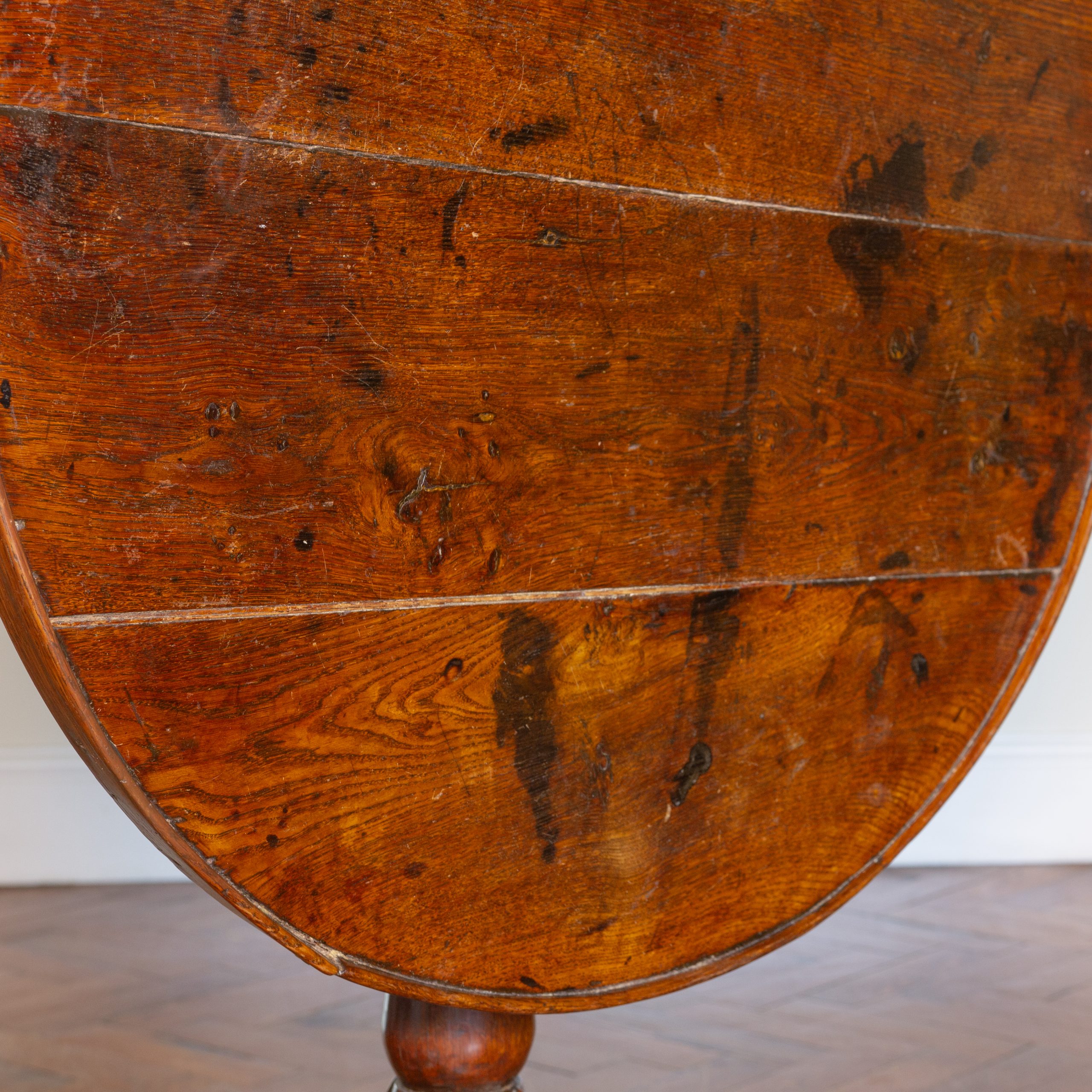 An unusual 18th century Welsh Oak ‘birdcage’ tripod table with galleried top, carved stem and tilt-top. Has a lovely patina. Whilst the top is uneven it is good enough to place your G&T on.